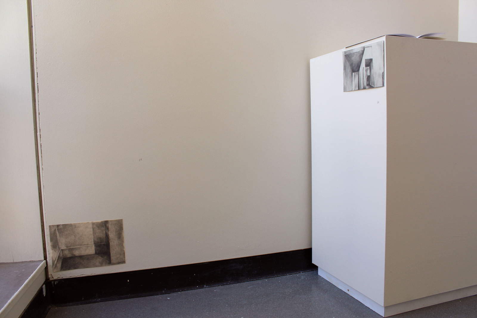 Echoes, #1, #28, #2 (Installation view) | Graphite on paper, oil on paper, house paint | 2016