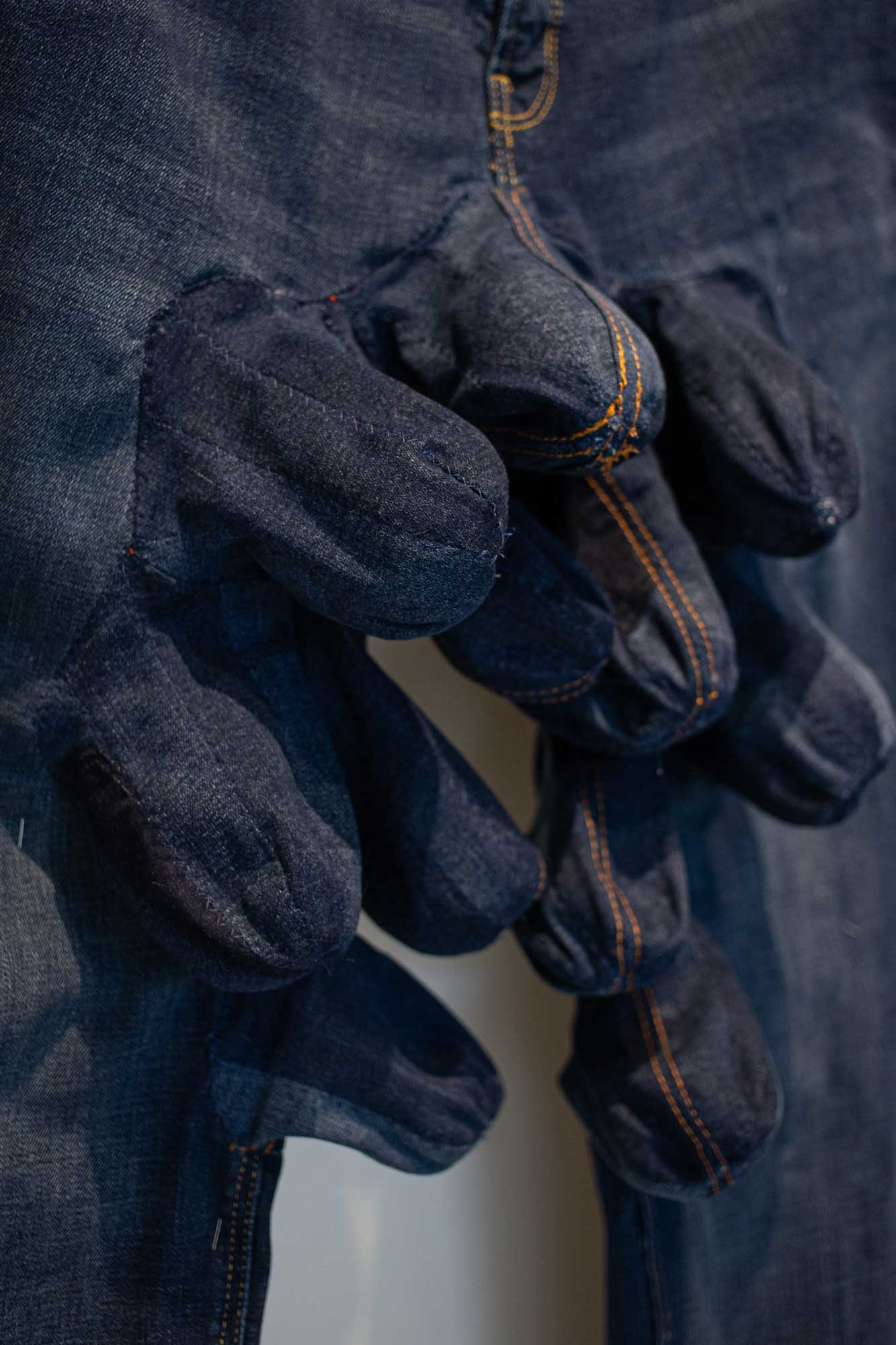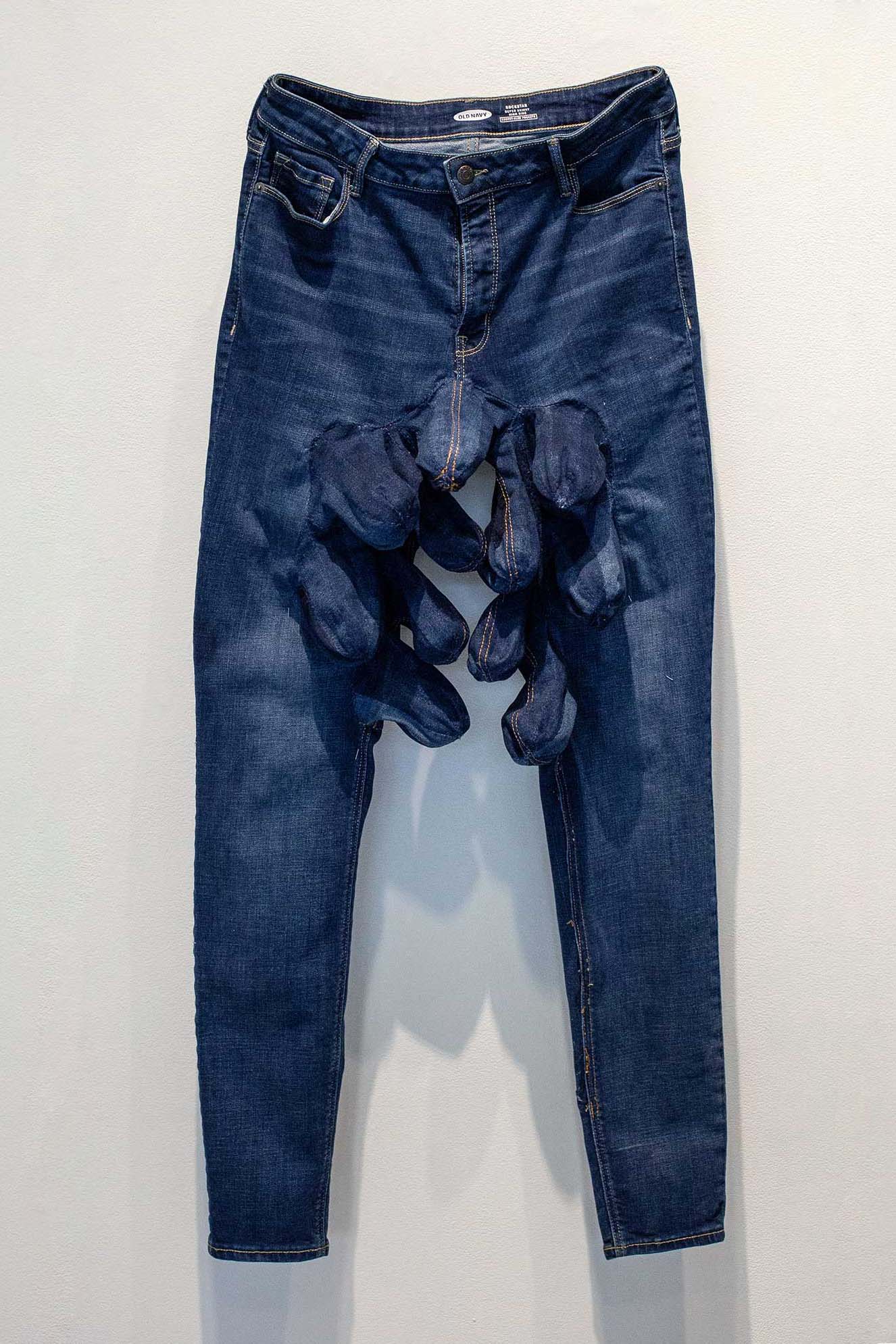 Strapping It On: Pop-Up Gender #2 | Two pairs of identical jeans found at a thrift store, thread
