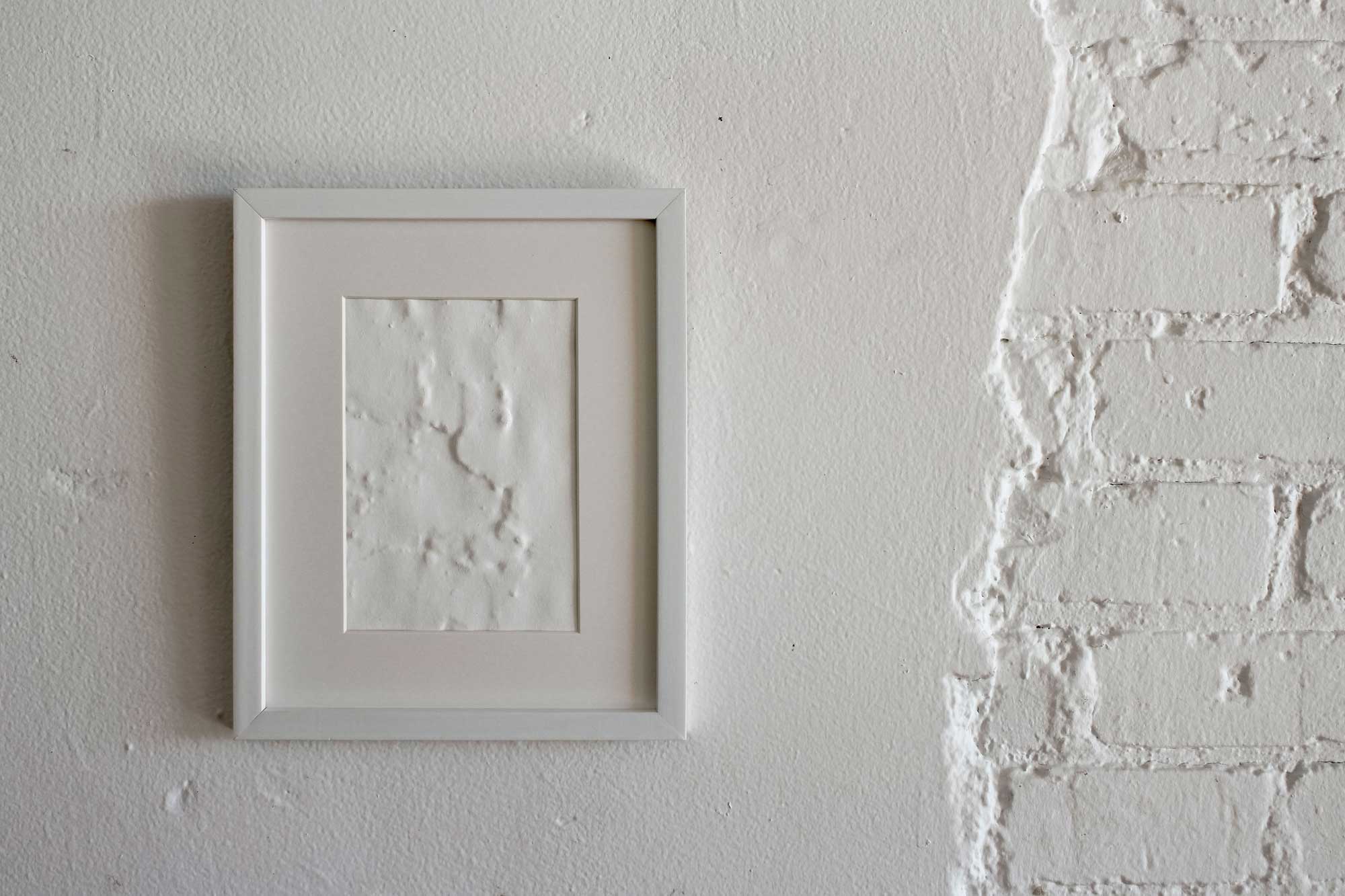 Untitled Study | Paper, wetted and pressed against a wall until dry; latex paint; and frame | 2018
